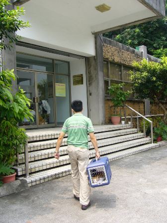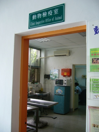 入出境動物檢疫作業的辦公室 就在檢疫局大門口的玄關 擺張桌子而成 離檢驗的房間很近