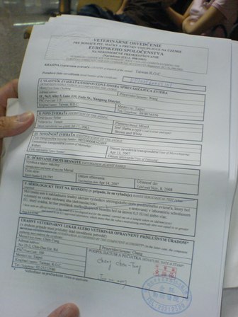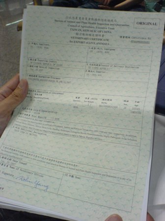 還有檢疫局發給我們的"輸出動物檢疫證明書"